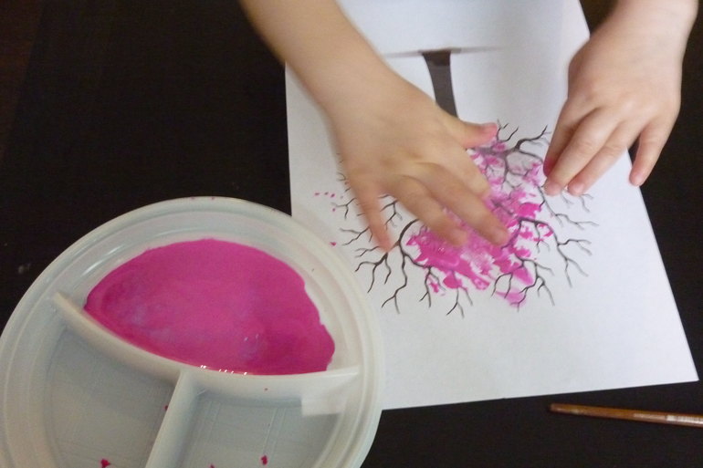 Рисовали при помощи пленки "бах-бах" . так ее Саша назвала