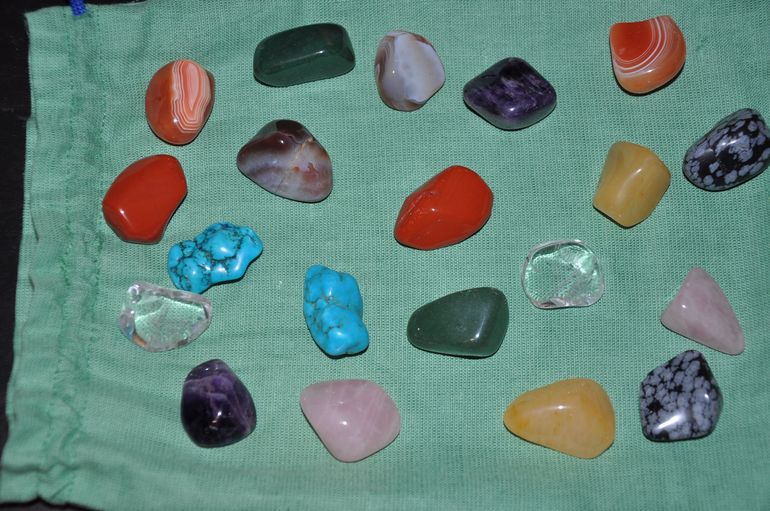 Раз уж заговорили о самоцветах, покажем заодно и просто набор самоцветов от того же производителя - "Коллекция самоцветов №2 в льняном мешочке".