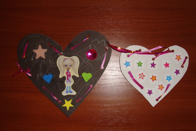Спасибо) Еще можно сделать отверстия дыроколом, продевать ленточки и завязывать узелок. Хорошая получится поделка с элементами обучения завязывания).