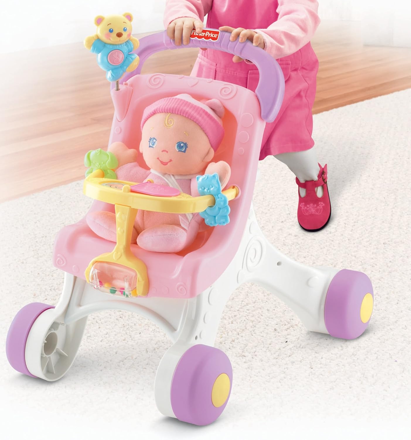 4. Fisher-Price - Puppenwagen. Ходунки-каталка. На рождество от папы с мамой. Доче было 9 мес. Используются, как ходунки, нажимает кнопку с музыкой на медведе. Сажает и достает от туда куклу Мару(п.5). Очень устоячивая коляска, научилась с ней ходить, как с опорой, рада покупке! Теперь это коляска по назначению, для куклы.
