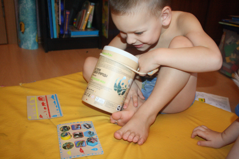 В зависимости от возраста можно игру усложнять, для этого есть еще кубик