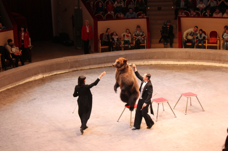 Само представление было очень интересным. Мишка нас просто покорил. Он и танцевали и катался на самокате и прыгал и кувыркался и чего только не делал.