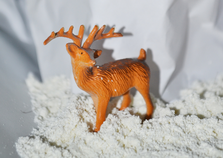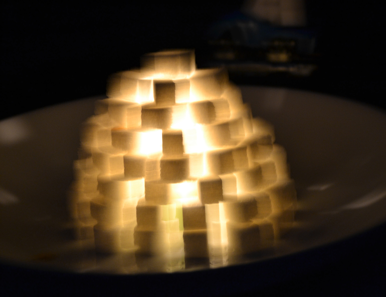 Иглу мы сделали из кускового сахара, внутри горит свеча.