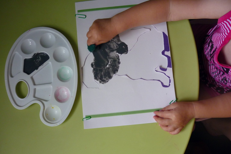 Малышка сама клей наносила на мордочку и клеила, а остальные детали мама наклеивала, а ребенок клей намазывала..