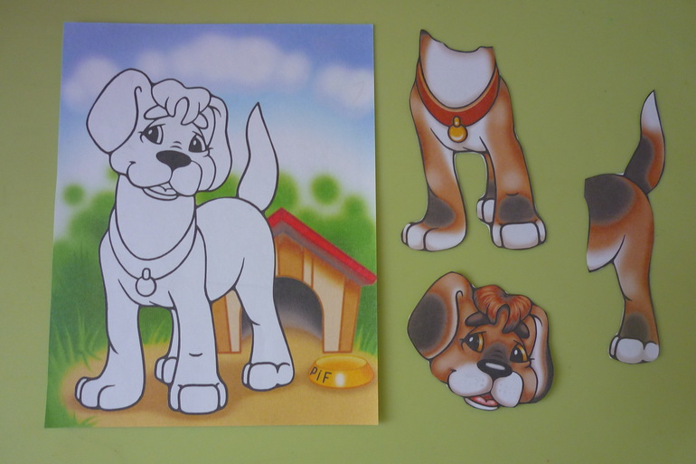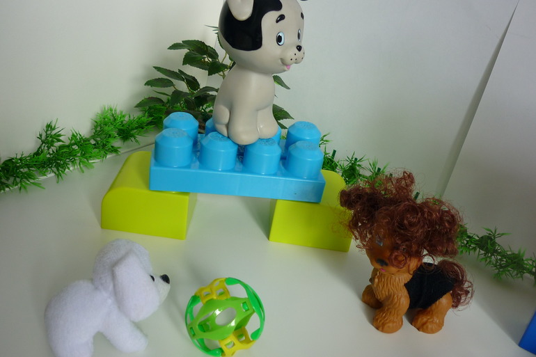 - выбери собачку- ставим несколько фигурок животных и одну собачки, надо выбрать собачку.