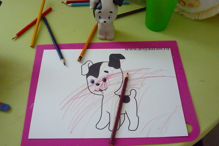 4. Раскраска- раскрасить карандашами собачку.