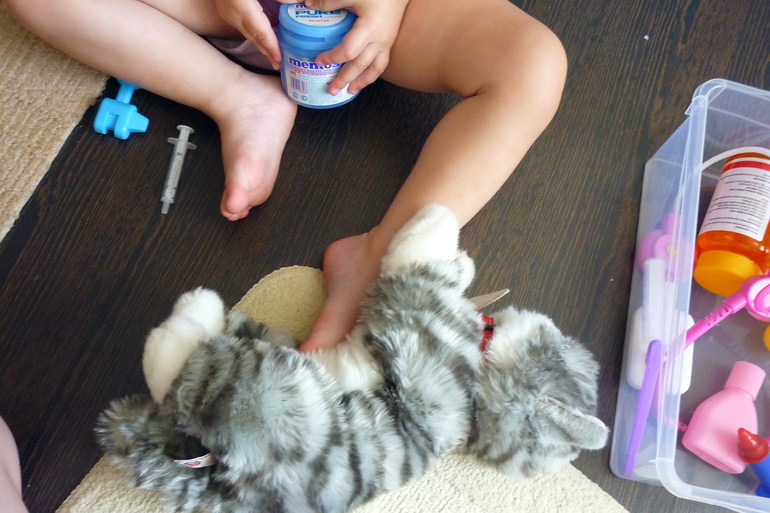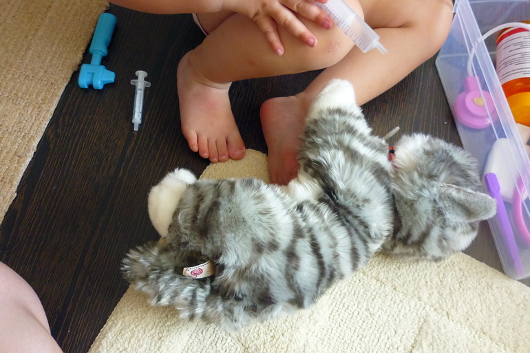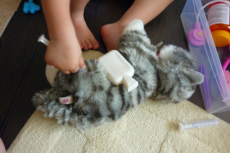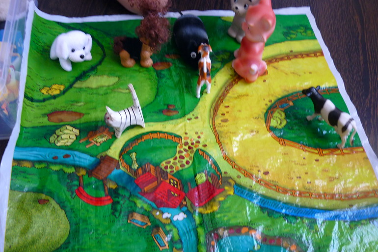 Я хотела обыграть книгу "Кот и пес". но Саша решила пригласить на прогулку всех друзей котика