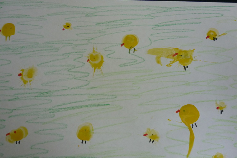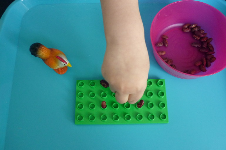 Предложила покормить петушка. поставила все необходимое... Саша уселась .. начала кормить.. а потом побежала со словами "Диии" (что означает два).. оказалось я забыла принести второго петушка покормить)))