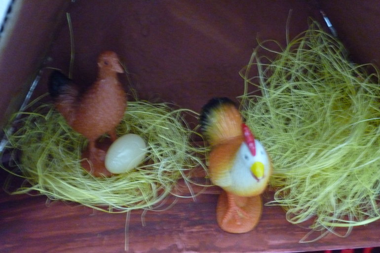 Идея Сашулина)) Я предложила построить курятник. а она нее и сама усадила курочку на чердак. я правда его немного окультурила))