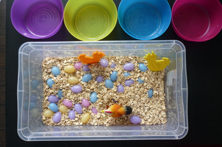 Пока курочка кушала ее яички перемешались. надо помочь курочке. Сашуля очень любит сортировку. крупы. но не сегодня... немного поиграв. маме пришлось заканчивать начатое дело((
