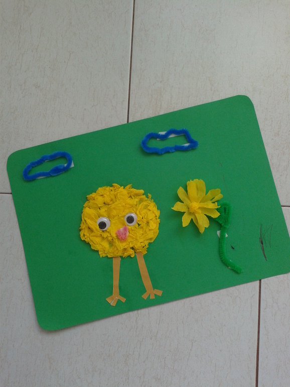 Весенне-пасхальный цыпленок. Сделав его Соня сказала, что он некрасивый. Ей больше куличик понравился.