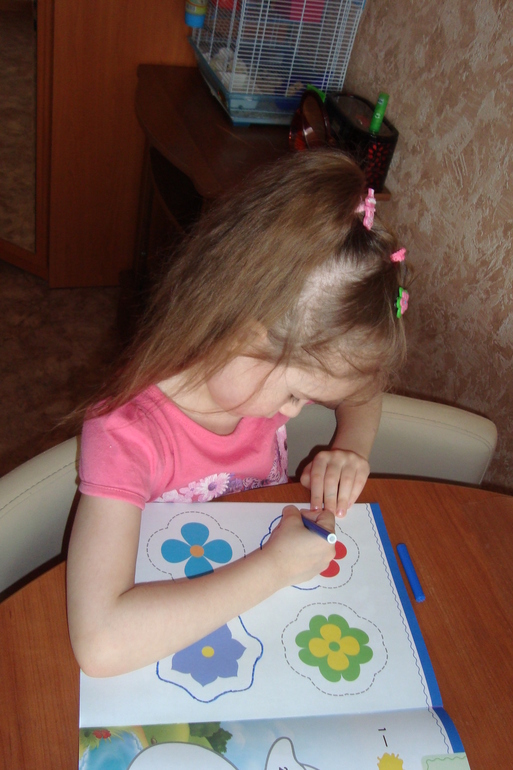 Нужно обвести цветочки.