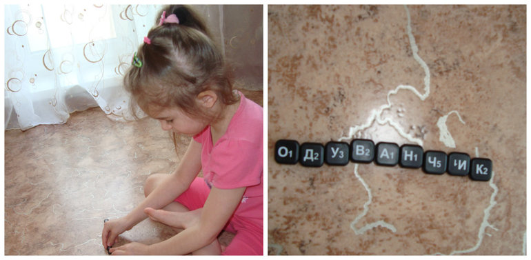 Решаем головоломку. Такого плана задания мы еще не выполняли, поэтому потребовалась моя помощь и объяснения.