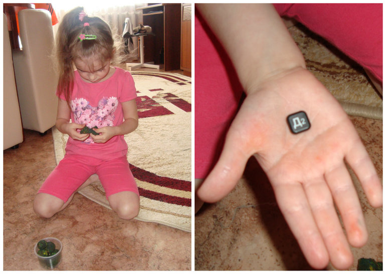 Нужно отыскать букву в шариках, скатанных из кинетического песка.