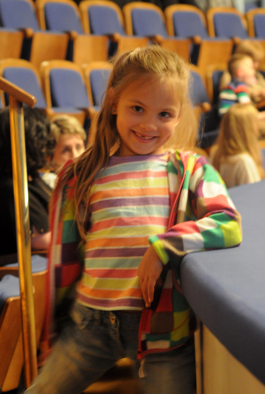 Сразу скажу, что места оказались неудачные, 1 ряд бельетажа, детям видно плохо,Ксю то стояла, то сидела у меня на коленях, но выдержала все 2,5 часа. Самые дешевые стоили 800р за билет. Пересесть в этот раз было некуда,зал был полный, народ на ступеньках сидел. Фотать само действие запрещено.