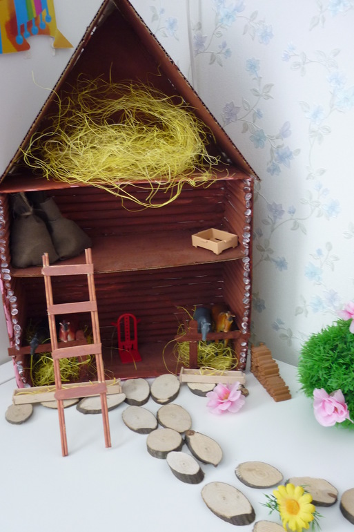 А на чердаке изначально хранилось сено. но как решила Сашуля, главный фермер. там будут жить курочки