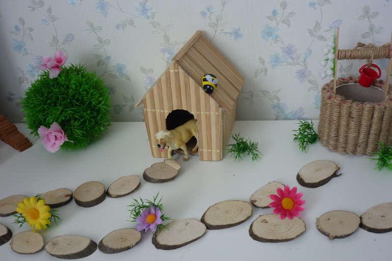 Вся ферма озеленена и растут красивые цветочки. а дорожки выложены деревянным спилом))