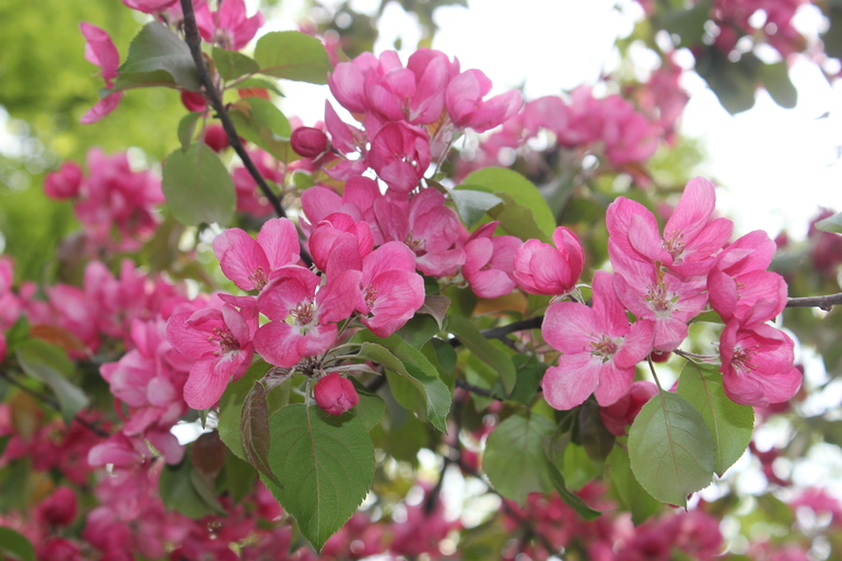Рядом с машиной росли шикарные яблони, все в цвету...
