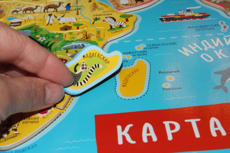 Развивающие игрушки (пазлы, вкладыши, конструкторы, мозаики)Наконецто мы стали счастливыми обладателями магнитной карты janod .Карта очень класная!!!! Я хотела заказать карту из Франции фирмы janod на французском языке .....Но очень хотелось карту на Русском,но качество ,как janod .И тут на просторах интернета появилась новинка от janod(как они заявляют)В майшопе добиться о качестве карты не смогла ,отвечали все время разное ,они ее в глаза еще не видели .Поэтому взяла на свой страх и риск и не прогадала . Она прекрасная .Оригинал из Франции не видела ,но читала отзывы ,что она деревянная.Здесь магниты не из цельного дерева,а чего-то прессованного и склеена из слоев ,сверху ламинированная наклейка очень хорошего качества ,не облазит .Попалось 2 магнитики бракованные ,в одном отклеен верхний слой с наклейкой ,а на втором расклеился на 3 слоя .Я склеила клеем ПВА и все отлично !!!! Как дальше посмотрим ....Вообщем мы от карты в восторге !!!!!! Кидаю ссылочку http://my-shop.ru/shop/toys/2242784.html Размер карты: 77х46х1 см. Спасибо Наташеньке за предоставленную25% скидку в Майшопе !!!! ://m.babyblog.ru/user/Nataly02/3159291
