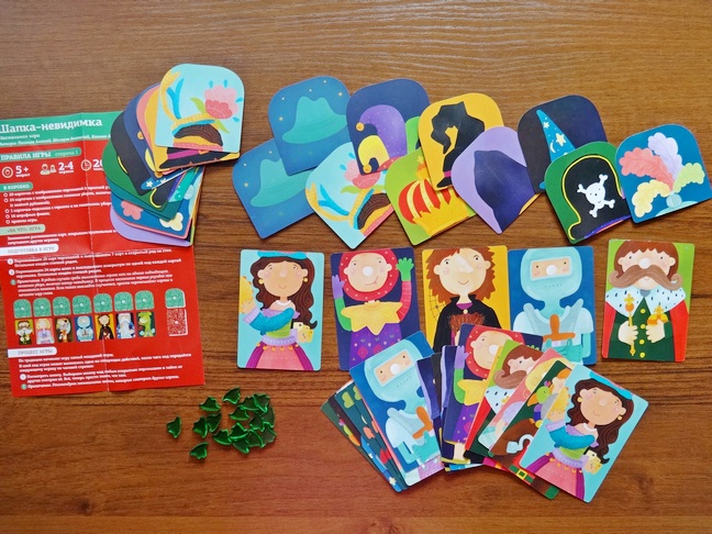 (вообще ошибается она нечасто - не каждую партию, и больше двух фишек за игру у нее не бывает). Мы договорились, что на меня шапки-невидимки не действуют, то есть если я заработала штраф, то его ничем уже аннулировать не могу (это чтобы не поддаваться). Чтобы усложнить игру (если ребенок уже играет на одном уровне со взрослым), можно совсем убрать из колоды шапки-невидимки.
