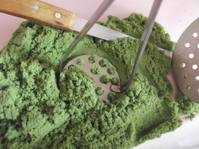 А еще в лепке.Пластилин + трубочки хорошая тренировка для мелкой моторики .2. Толкушка для пюре,вот такая с дырками.Чудесный инструмент для рисования.