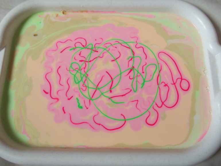 5. Молоко . На молоке рисовали практически все , но если вы еще не пробовали , то срочно исправляйте ситуацию !Молоко наливаем в плоскую тарелку или поднос,капаем сверху гуашь и рисуем зубочисткой.Готовую красоту можно легко отпечатать на бумагу.6. Соль . Если на акварельный рисунок насыпать соль , краска начнет красиво растекаться.