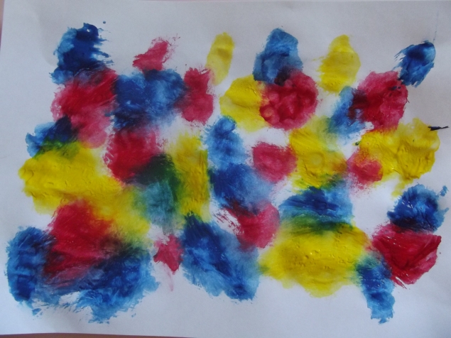 4. Пищевая пленка. Рисуем с ее помощью в технике " сухое рисование " .На бумагу капаем краски и накрываем слоем пленки.Рисуем руками,ногами,пальчиками.Снимаем пленку,рисунок готов!Плюс данной техники,что ребенок остается совершенно чистым!))