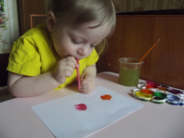 1. Трубочка для сока .Через нее можно не только пить сок,а еще и рисовать!Нужно развести акварель водой , капнуть на бумагу и дуть на нее через трубочку .![]()