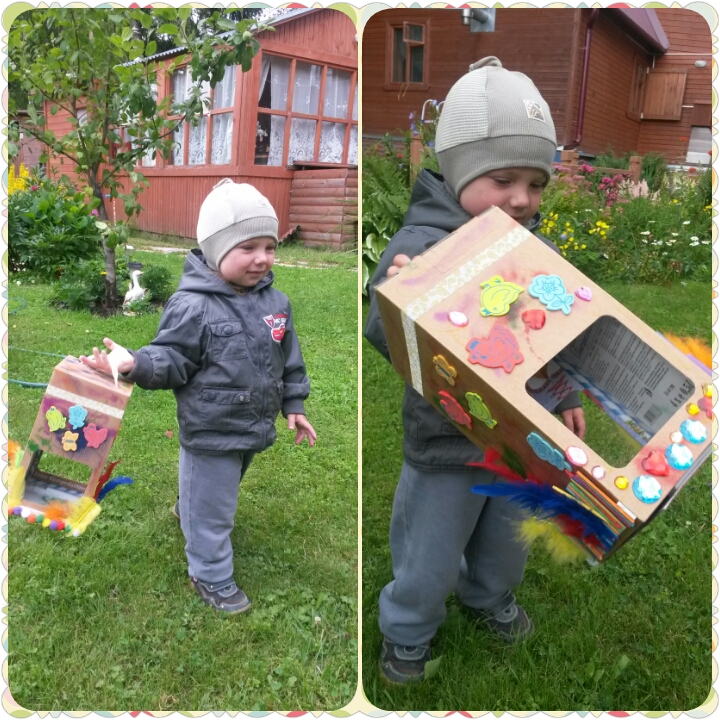Была у меня коробка от пива, я ее на изнанку вывернула и отдала детям. Вот что получилось. Все стороны разные.