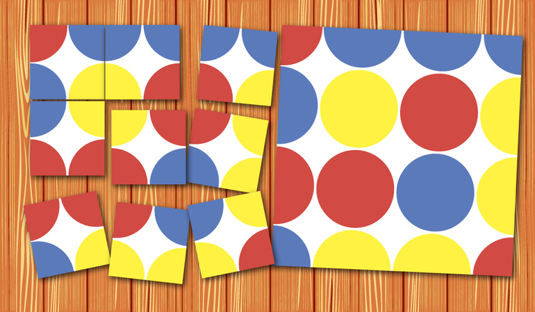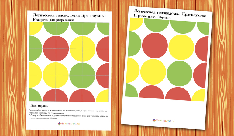 Распечатайте листы с головоломкой на плотной бумаге, а один из них разрежьте на отдельные квадраты по серым линиям.