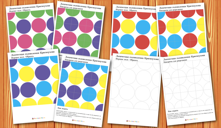 Каждый вариант представлен листом с игровым полем (образцом) и листом с квадратами для разрезания.