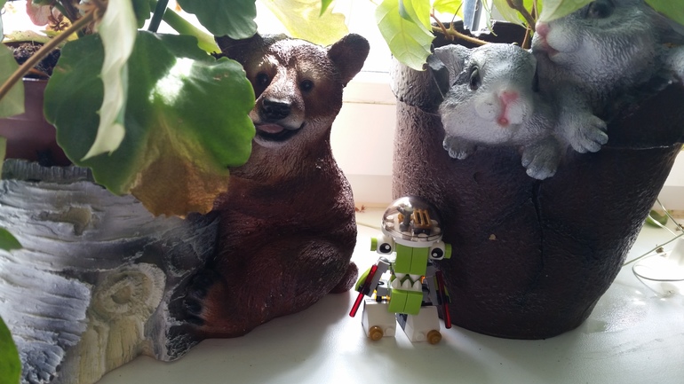 Например я спрятала Микселя под столом на мяче. Сережа долго его искал. Очень удобная кстати игра, чтобы заняться домашними делами))