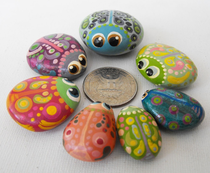 Дети любят собирать камни, но что дальше с ними делать обычно не знают. Предложите им сделать их яркими и разноцветными, вдохнуть в них жизнь - превратить в забавных букашек, животных или смайлики. Уверена, вы и сами будете увлечены вместе с ребенком этим занятием.