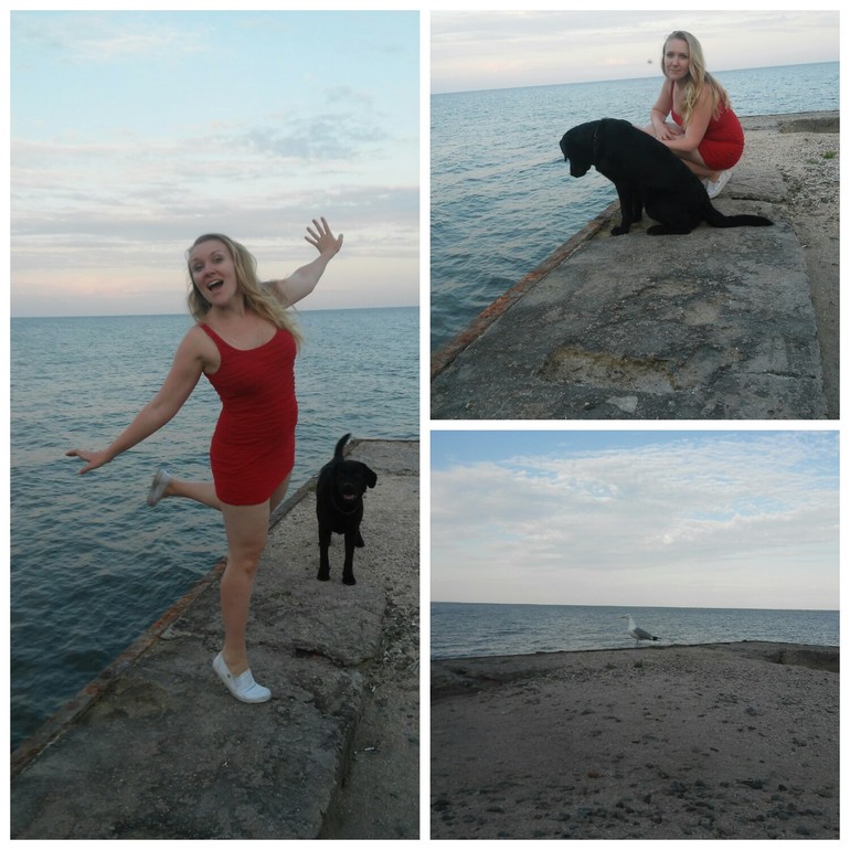 Единственный плюс нашего домика был в том, что из него мы выходили на территорию пляжа заброшенного пансионата (к слову их теперь там не мало), и три дня мы были там практически сами!!! Муж с Джексоном купались прям там, а я боюсь бетонных пирсов. Меня утречком муж возил на песчаный пляж. Люблю своего мужа