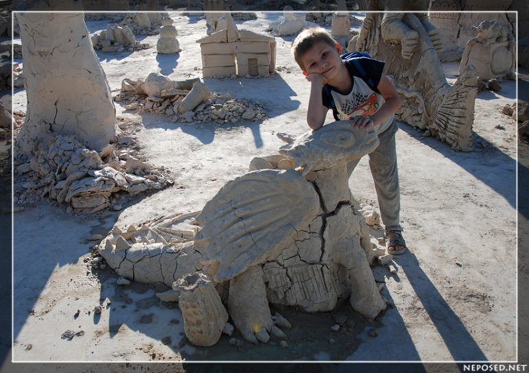 Мы все перепачкались, хоть и были фартуки. Налепившись я пошла фотографировать понравившиеся мне скульптуры, а Даня стал просить его фотографировать со всеми, которые понравились ему. Помучилось очень много ) И он сам позировал )