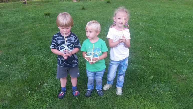 И ему понравилось! Через некоторое время в лукошке появились такие вертушки - запускалки