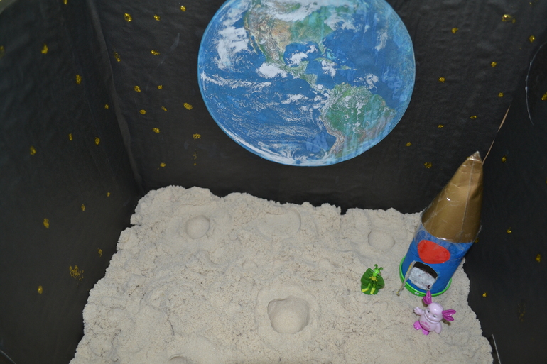 Ее поверхность была усыпана кратерами,образовавшимися от падения метеоритов, небо было черным , а Земля выглядела потрясающе.
