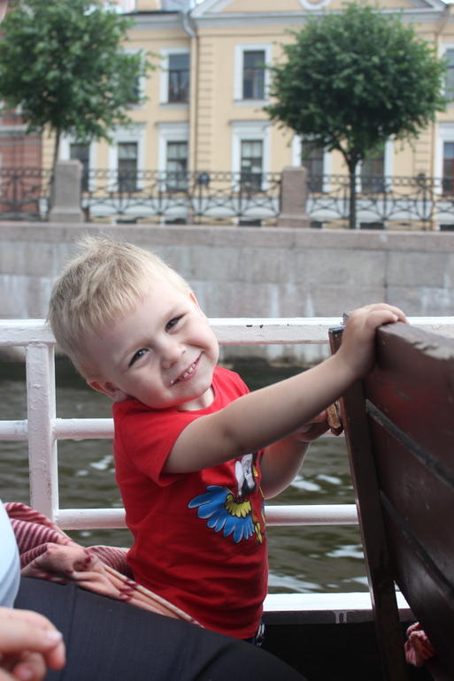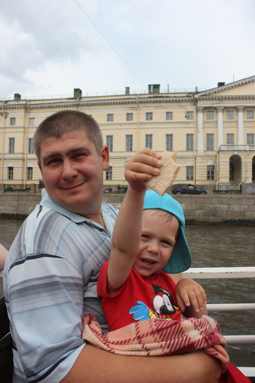 Припарковались... а дальше как ливануло... Это был действительно дождь из ведра.. Просто такого ливня я не видела давно. Мы все спрятались внутри кораблика.. Благо нас не выгоняли... Сидели и ждали, пока хоть немного успокоится. Подождали, подождали и пошли. Коляска насквозь мокрая... Мы сами тоже. Подстелили Темику в коляску накидку от коляски и бежать... Промокли насквозь, но все равно счастливые и довольные. Солнышко к тому времени уже вышло... Небо снова стало голубым и красивым... День получился насыщенным... День рождение (напишу и о нем чуть позже, Исаакиевский собор и катание на трамвайчике). И хочется еще и еще приключений.