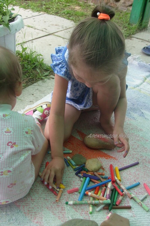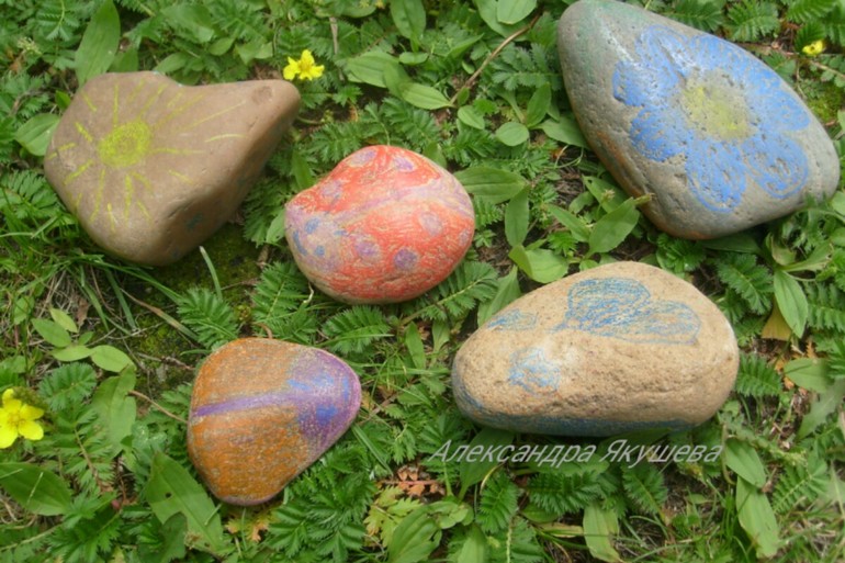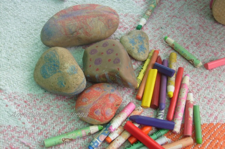 А еще камни раскрашивать можно восковыми мелками!