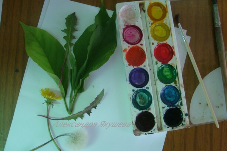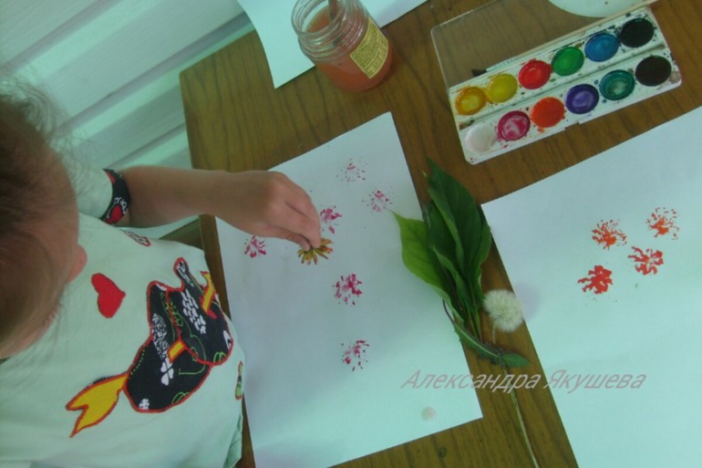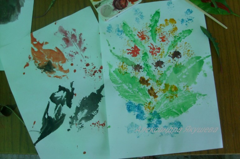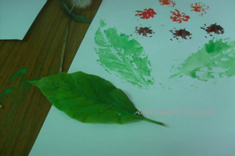 Куда же без цветов и акварели! Штампы из листьев помогут создать красивейшую картину!