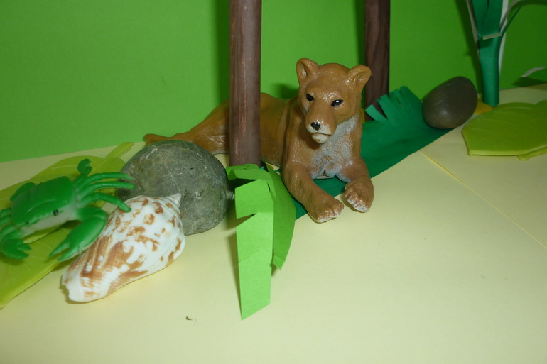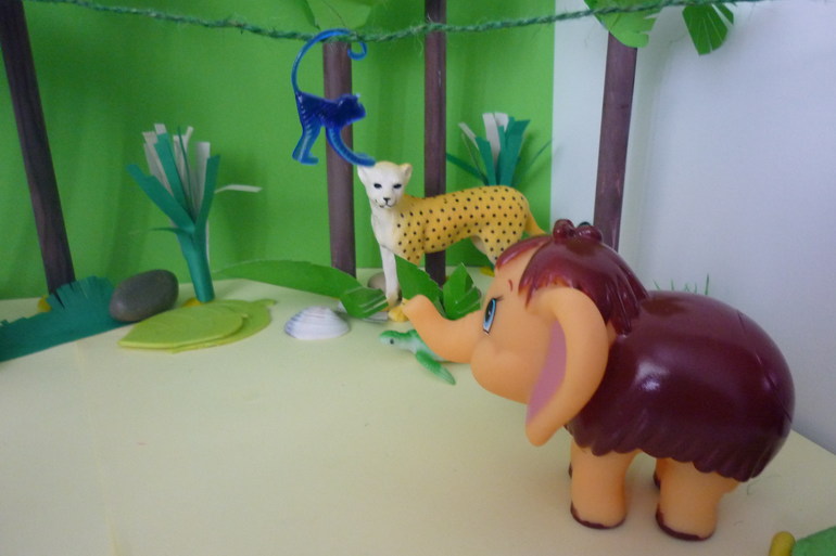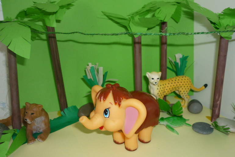 Наконец Мамонтенок приплыл в Африку.Его увидела Обезьянка и очень удивилась.