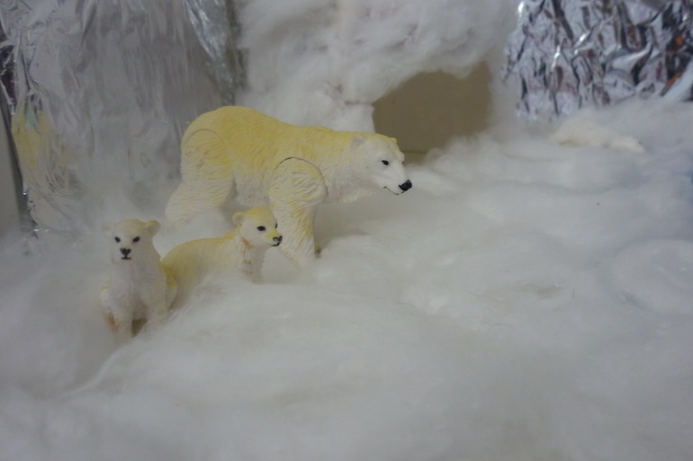-Давным-давно, когда на севере было тепло, жили здесь такие звери. но они ушли в Африку.