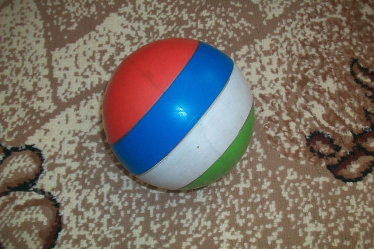 2. Футбол с резиновым мячом. Ворота - дверной проём. Я вратарь, сын бьёт по мячу. Потом меняемся местами. Вот такой у нас мячик: