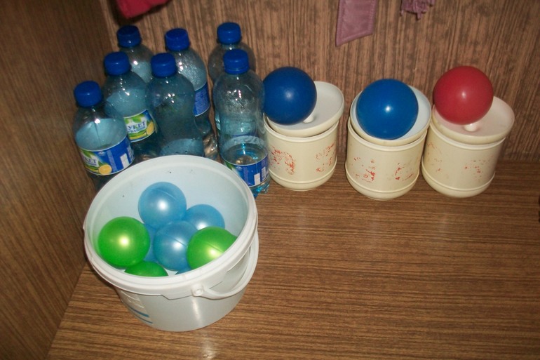 5. В эти же емкости пытаемся попасть мячиком внутрь