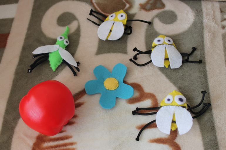 На днях сделала для нее карточки и сшила из фетра комара, пчелок, цветок. Хочу показать вам, что из этого получилось.
