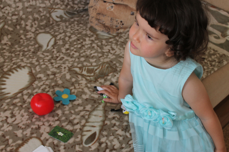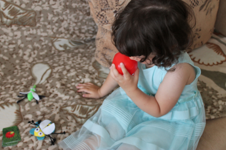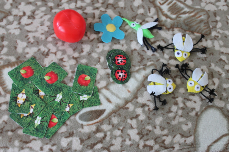 Пчелок, комара и середину цветка уплотнила наполнителем. Игрушки объемные, их удобно брать руками. Маше игра очень понравилась. Я в игре ей поддаюсь. Игра рассчитана на детей от 5 лет, а Маше еще трех нет. Но мне кажется, что внимание и скорость реакции можно уже начинать тренировать. Очень рекомендую игру всем!