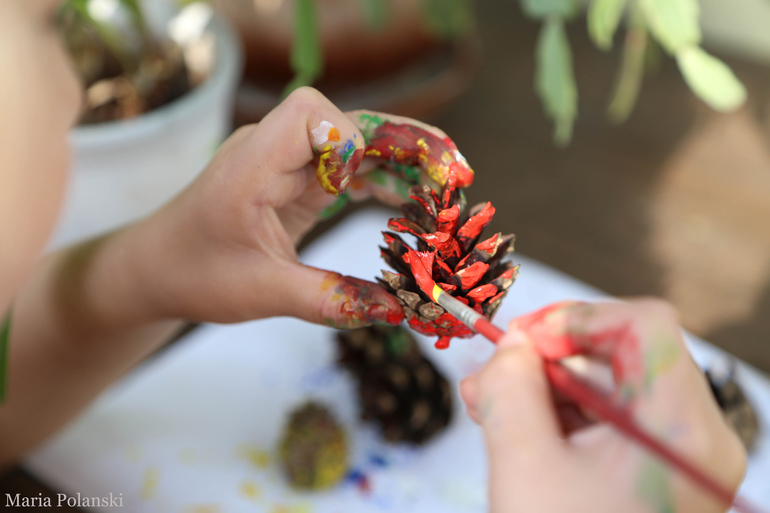 Когда мы гостили у дедушки, то собрали целый большой мешок шишек (там очень много сосен), и решили их покрасить! К Новому году нам точно пригодятся разноцветные шишечки и так приятно будет вспоминать, как мы их красили под теплым летним солнышком!