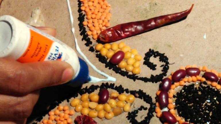 Очень мне понравилась эта идея, крупой можно раскрасить акварельные (и не только) картины.
