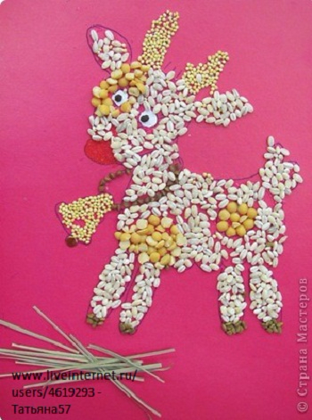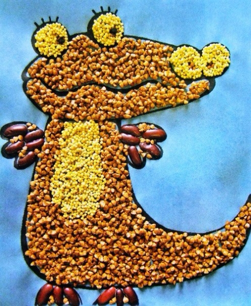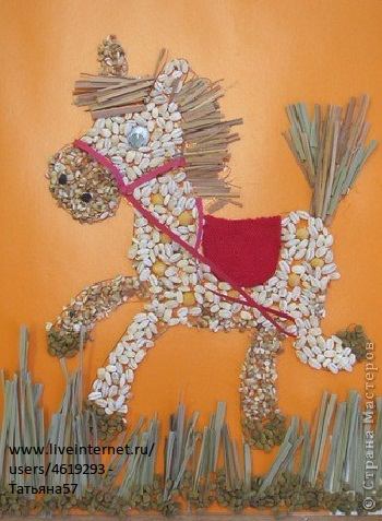 Мистер Умелец или Очумелые ручки (поделки, аппликации, интересные находки, идеи и задумки)Крупа - прекрасный материал для поделок. Ее легко можно покрасить, и тем самым сделать работу яркой и привлекательной. Гречка, пшено, манка, рис, горох, различные семечки все, что только можно наклеить пригодится для работы. Вот уж действительно, можно фантазировать сколько угодно. Картины из круп - красивое и оригинальное украшение вашего дома. Крупы разные по своей природе, и обладают не только разными размерами, формами, фактурами, но и интересными цветами. Например кукурузная желтая, гречка коричневая. Такие крупы как рис или манная крупа белые, поэтому на них можно раскрашивать. Как всегда - это ваше желание творчески развивать ребенка, ваша фантазия и хорошее настроение! И вы получаете удовольствие от творчества, и малыши развивают мелкую моторику рук и пальчиков.