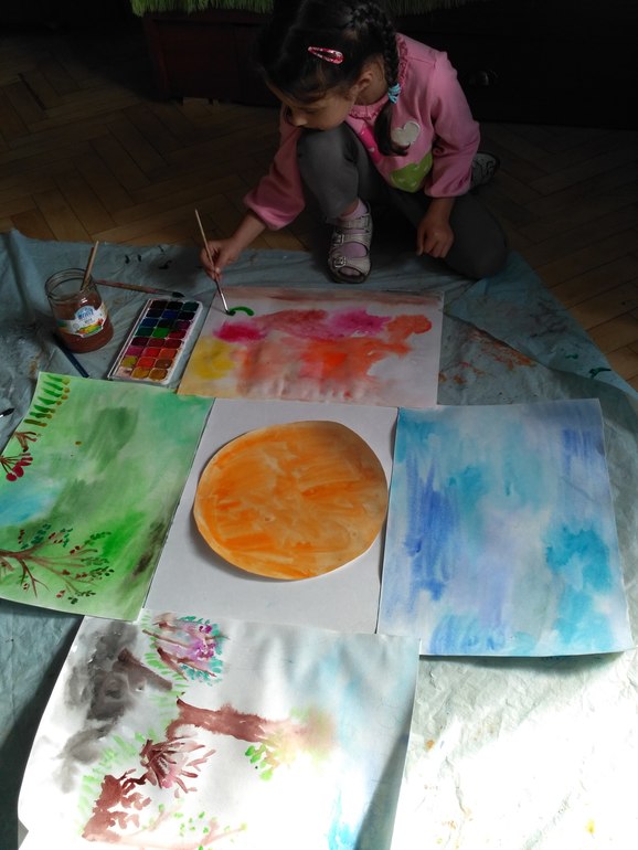 Хотя, не знаю ,бывают ли очень большие листы акварельной бумаги. здесь листы А3...ну, или склеить несколько можно. Еще было бы здорово, в каждом времени года нарисовать изменения от месяца к месяцу, животных, растения, праздники. Так что,думаю, это у нас не последний вариант)